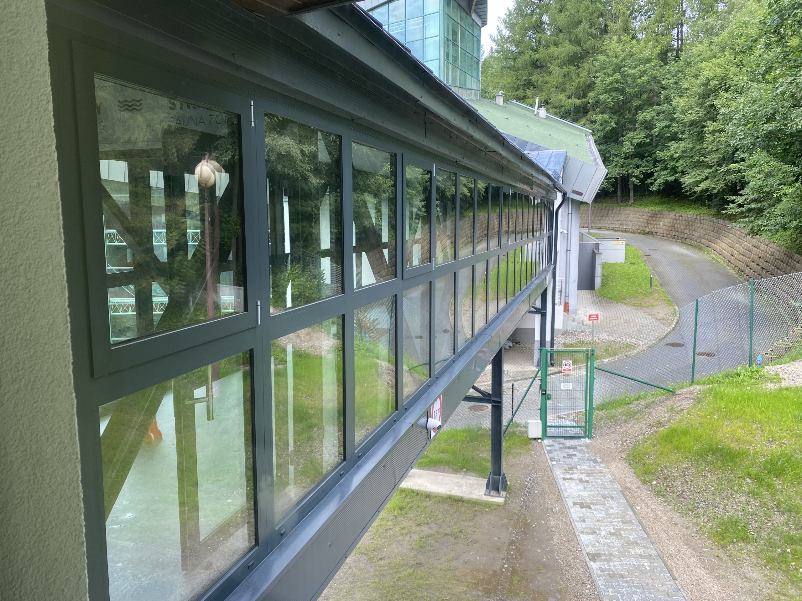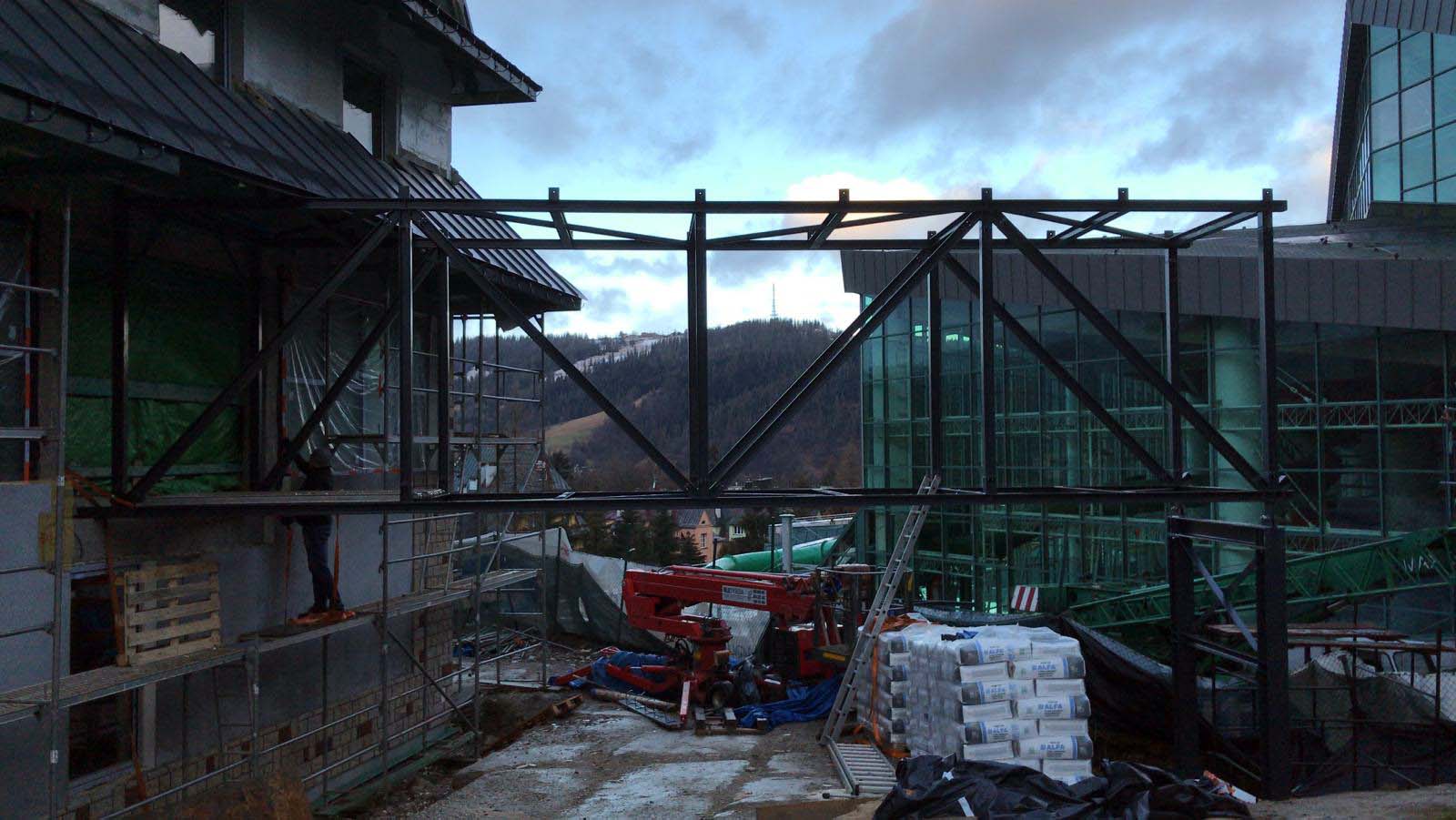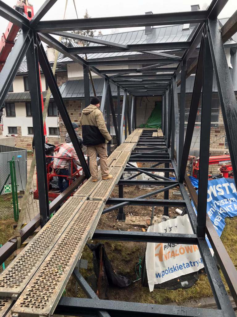 Kładka łączy Hotel Antałówka z basenem Aqua Park Zakopane.